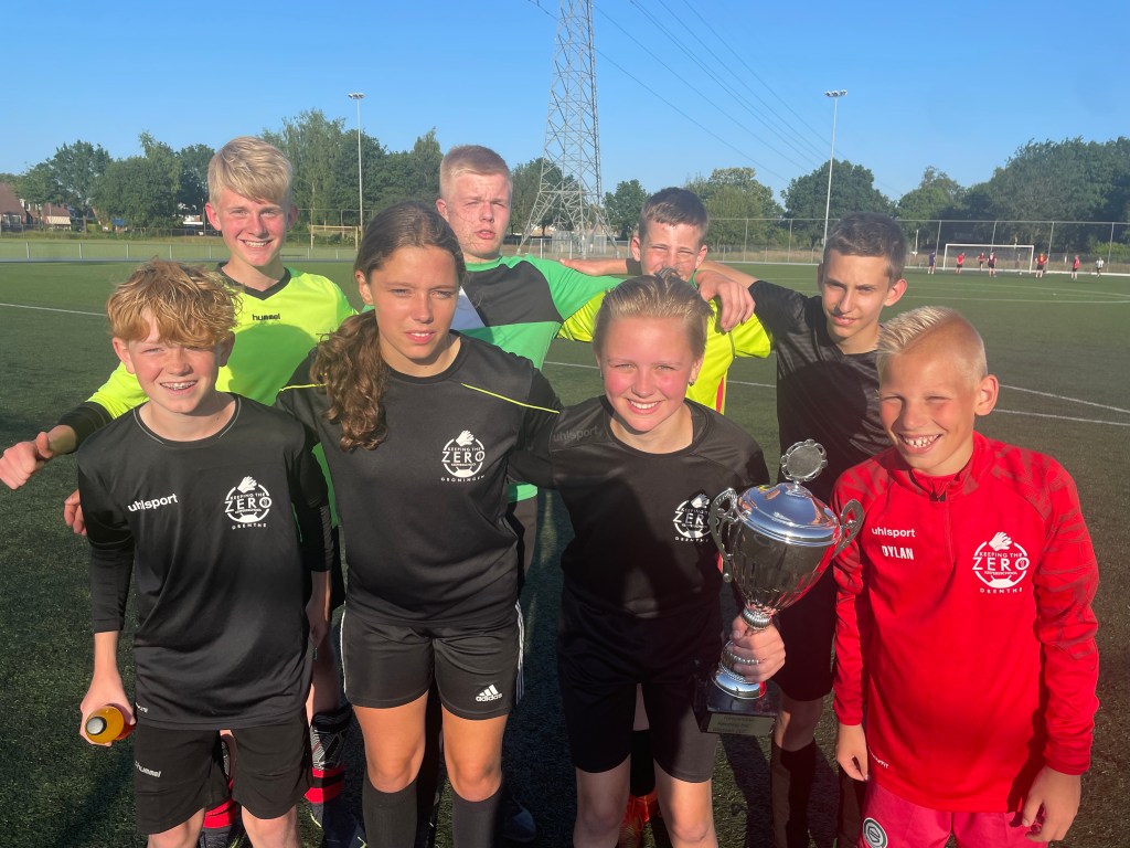 In Assen was de laatste training op 13 juni. De wisselbokaal ging naar de bij Actief uit Eelde spelende Krijn Datema. In 2015 geboren, maar nergens bang voor. Met gevaar voor zichzelf gooit hij zich voor iedere bal. Zo zien we hem technisch ook steeds beter keepen. Goed staan en ballen vasthouden. Deze blonde doelman gaat nog veel meer stappen maken dan hij al heeft gedaan.