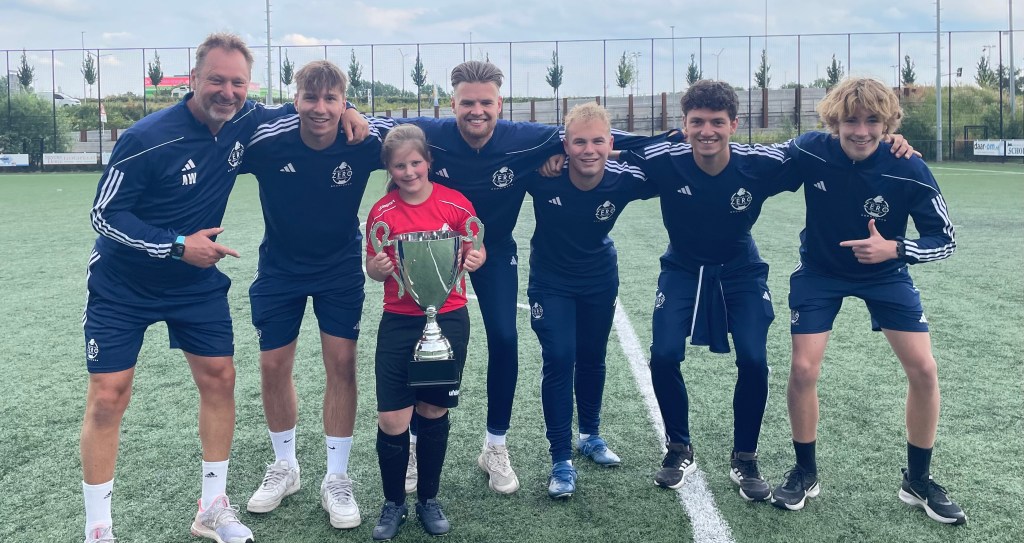 Tijdens de vrijdag training van 30 juni j.l. ging de bij De Lauwers uit Warfstermolen keepende Lisa Hummel er met de bokaal vandoor. De bokaal met de grote oren wel te verstaan. Deze in 2012 geboren keepster zien we inmiddels een jaar. En in dat jaar zijn we rustig aan haar ontwikkeling gaan werken. Dat ging stap voor stap omhoog. Zo is ze steeds beter in staat te doen wat nodig is om doelpunten te voorkomen. Het is mooi dat ze alles uit zichzelf haalt. Gedreven als ze is slaat ze geen training over. Het plezier straalt van haar af zodra ze haar handschoenen aandoet.