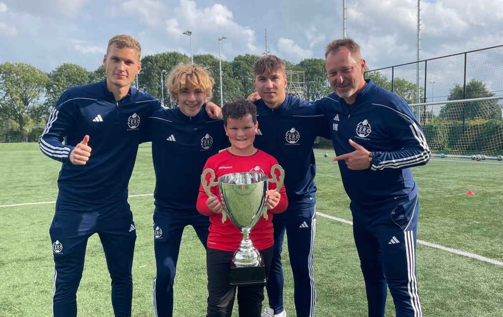 Tijdens de trainingen van vrijdag 21 juli waren er nog twee bekers te verdienen. De eerste beker was voor de bij Kloosterburen keepende Dex Vink (2013) die de beker mee de auto in kon nemen. We zien hem pas sinds 1 februari iedere week op het veld. De ontwikkeling die we hebben waargenomen is echt een applaus waard. Dex kan trots op zichzelf zijn. Nog wat rustig in het begin zien we nu een keeper in het veld staan die graag leert en beter en beter wordt.