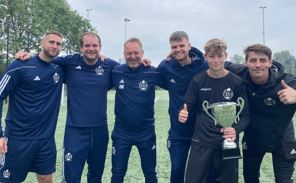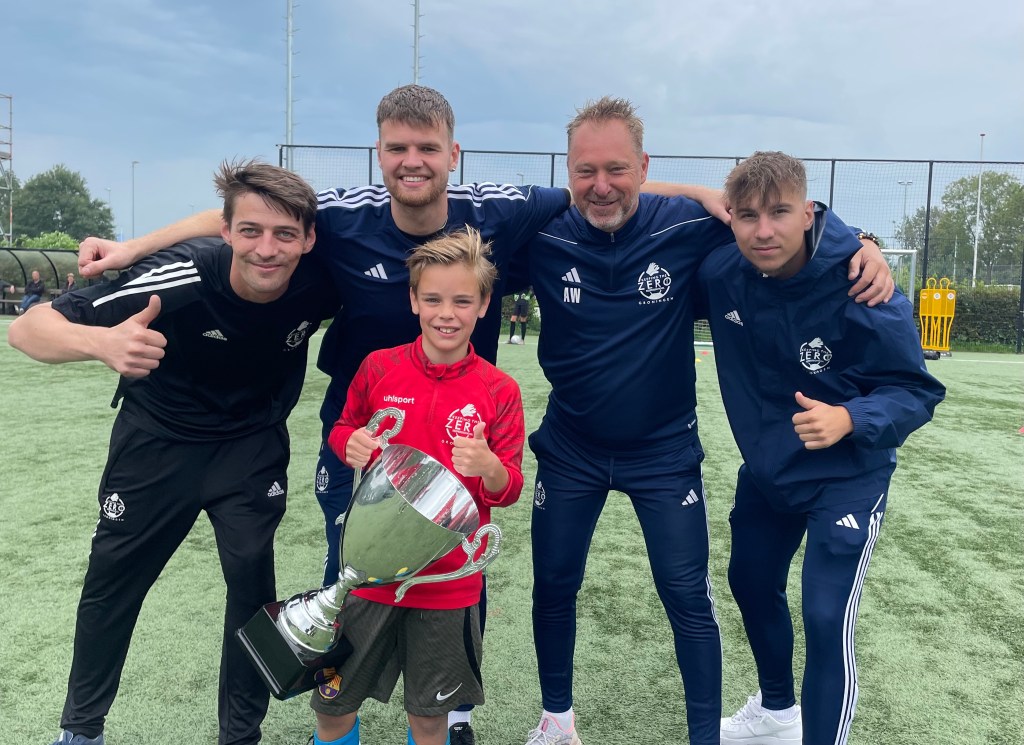 Bij de eerste trainingsgroepen op zondag 17 september j.l. ging de in 2012 geboren Tom Schelwald er met de beker voor talentontwikkeling vandoor. We zien hem al bijna een jaar. Zo trainde hij vanaf het begin op de vrijdag, inmiddels is hij uitgeweken naar de zondagochtend keeperstraining. Zijn explosiviteit is enorm. Hij pakt ballen die je niet voor mogelijk houdt. Dat beter worden gaat dan ook maar door. Met zijn bekende lach staat hij dan ook op de foto. Tom speelt bij VEV67 uit Leek.