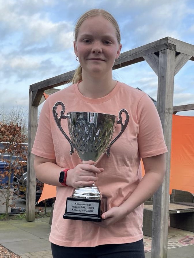 Bij de 2e trainingsgroepen was het de in 2006 geboren Sam Schouwenaars die de beker in Groningen kon houden. Hij speelt dan ook bij het stadse Lycurgus. Deze lange doelman die bijna de twee meter aantikt zien we al 9 seizoenen iedere week op de vrijdag. Zijn enthousiasme is nog net zo groot als toen hij er voor de eerste keer was in 2015. En ook dat maakt ons trots. Dat we keepers zoveel bagage mee kunnen geven om beter te worden. Plus, Sam heeft een leuke tijd. Een leerzame tijd. Maakt vrienden. Speelt tegen vrienden. Wint van vrienden en verlies van vrienden. Zijn proces is er niet anders om. Hij wordt gewoon steeds beter.