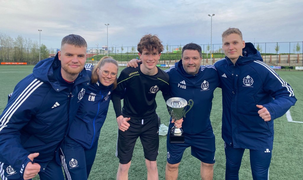 Op zondag 14 april ging de bij Scheemda keepende Xander Bloem er met de beker vandoor naar Oost Groningen. We zien de in 2011 geboren Xander sinds september 2023. Hij is een rustige maar gedreven kracht. Slaat geen enkele training over. Gewoon omdat hij keepen echt heel erg leuk vindt. En dan ontstaat er iets. Als je iedere week op het veld staat om je te ontwikkelen. Xander gaat natuurlijk nog veel beter worden, dat is een logisch gevolg van zijn inzet en passie.