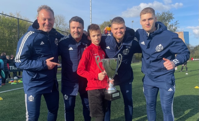 Bij de 2e trainingsgroepen op vrijdag 26 april was het de bij Helpman keepende Daan Schmaal die de beker mee naar huis kon nemen. En dat was niet de eerste keer. Daan, geboren in 2010, maakt een stormachtige ontwikkeling door. We zien hem iedere vrijdag. Inmiddels al twee jaar. Zijn wens was even simpel als helder. Hij wilde goede keeperstraining krijgen en een betere keeper worden. En dat wordt hij. Dat is hij. Zijn proces is in een stroomversnelling geraakt. Helemaal nu hij goed doorheeft wat er van hem wordt gevraagd tijdens de traiingen.