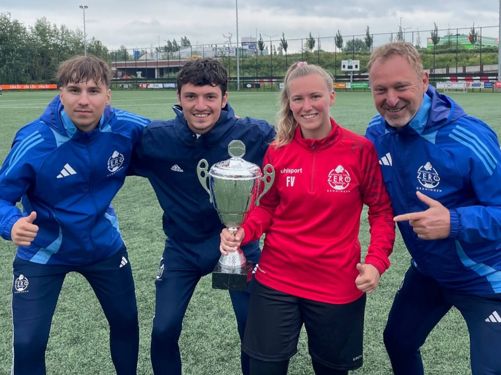 De tweede beker van vrijdag 5 juli ging naar de bij Gorecht Vrouwen 1 keepende Feikeline Valkema. Deze in 2001 geboren doelvrouw kiest haar eigen pad. “Als er bij de club geen training wordt aangeboden dan overleg ik met de club of ik bij Keeping the Zero mag trainen”. Zo gezegd zo gedaan, dus zien we haar iedere vrijdag. En ze barst van de ambitie. Haar doel is beter worden. En daar werken we samen hard aan. Met de juiste prikkels in de juiste omgeving zien we haar de stappen maken die ze zelf heel graag wil. Ze pakt ballen die je eigenlijk al telt. Dat is voor Feikeline echt fantastisch.