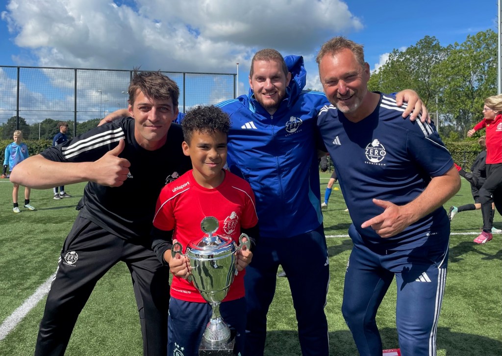 De laatste beker van zondag 7 juli ging naar de bij Glimmen keepende Emil Pfeiffer (2010). Emil zien we al 4 jaar iedere zondag. De groep waarin hij traint is een echte vriendengroep geworden. Ook dat zijn dingen die ontstaan als je als je samen traint en werkt aan je ontwikkeling. Emil kan en moet trots zijn op wat hij heeft bereikt. Echt trots. Met de bost vooruit. Want zijn prestaties op het veld zijn met 1 woord geweldig te noemen. Hij traint voor zichzelf, en daarbij laat hij zich dan ook niet afleiden. Want he, keepers laten soms een bal door. Dat is inherent aan keeper zijn. Maar Emil werkt hard, en dus zie je dat hij steeds beter in staat is doelpunten te voorkomen en de ZERO te houden.