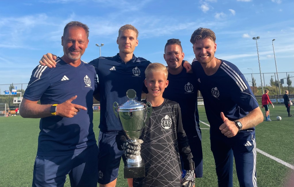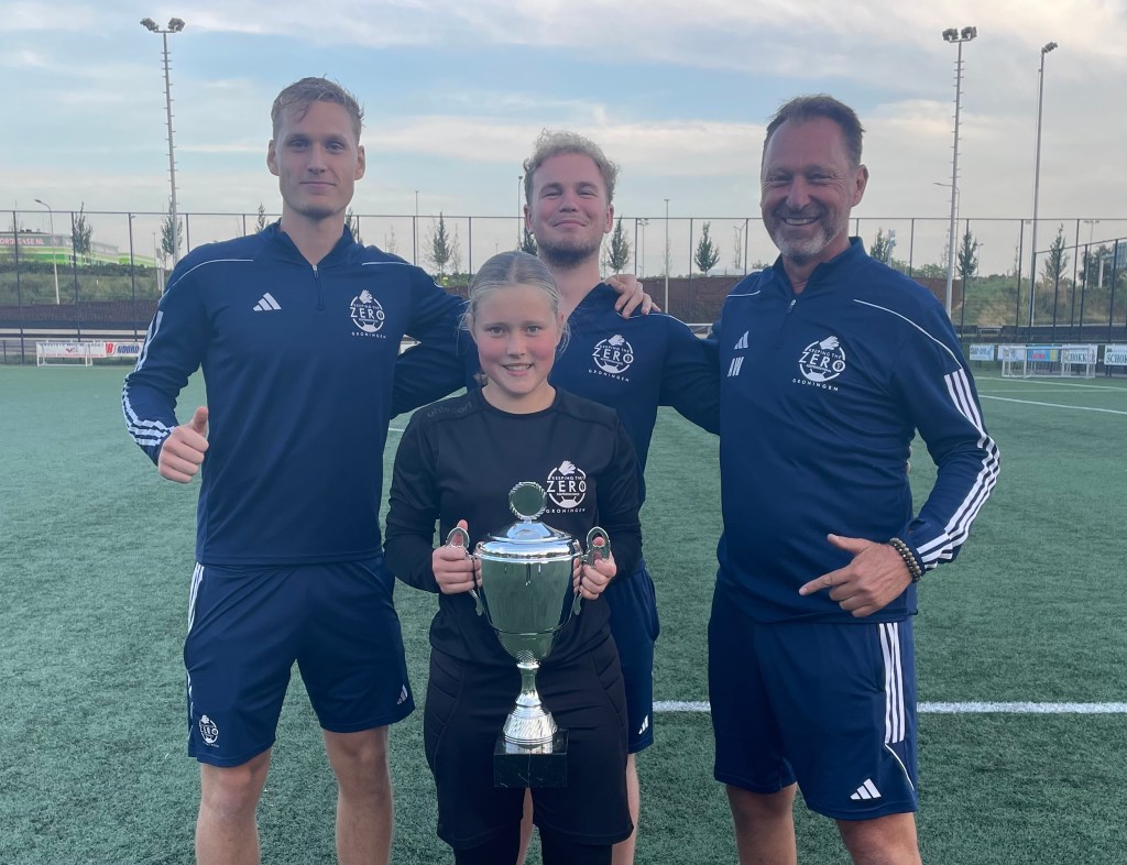 De bekers als stimulans voor talentontwikkeling waren natuurlijk ook weer aanwezig. De bij Lewenborg keepende Rooney van der Ploeg had de eer de eerste beker na de zomerbreak in ontvangst te kunnen nemen. Deze in 2014 geboren keeper zien we beter en beter worden. In mei sloot hij zich bij onze keepersopleiding in Groningen aan. In de afgelopen maanden hebben we hem zien groeien. Van een keeper die zomaar ergens gaat staan naar een keeper die bewust is waar hij het beste kan gaan staan. En dan zie je dat de kans op een doelpunt kleiner wordt. En dan ontstaat er weer vertrouwen. Beter worden is een mooi proces. Helemaal als je je bewust bent wat je doet en waarom je het doet. Rooney zal nog veel beter gaan worden. Wat een prachtige naam is het overigens ook nog eens. Rooney!