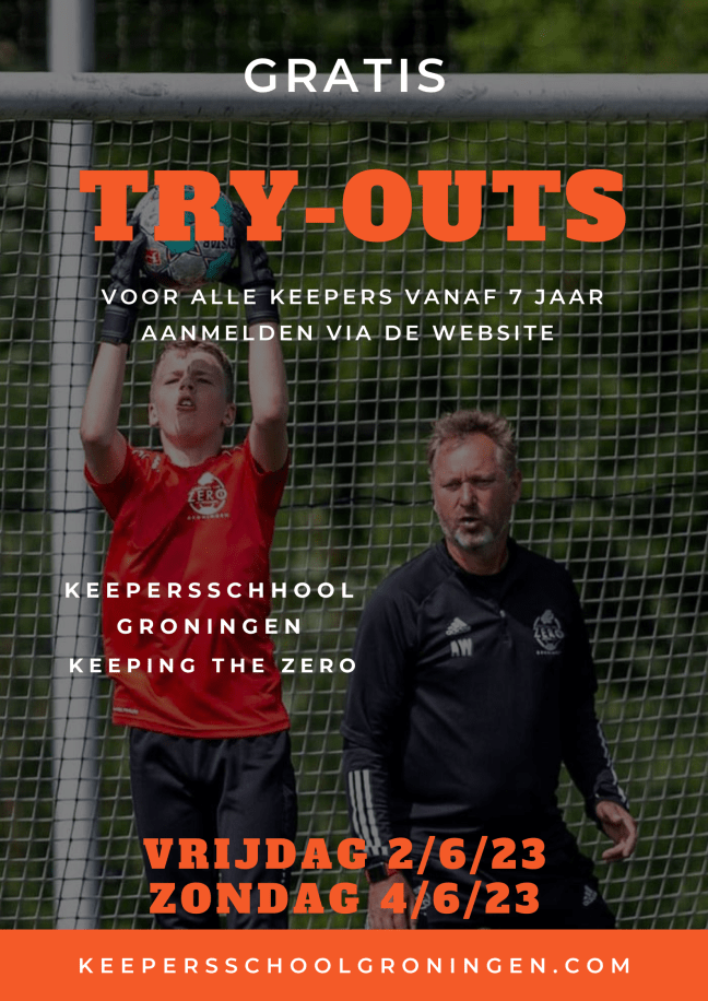 Keepersschool Groningen Keeping the ZERO leidt sinds 2014 keepers op vanaf 7 jaar tot en met de senioren. Op vrijdag en zondag in Groningen, op dinsdag in Assen. Op vrijdag 2 juni en zondag 4 juni zijn er gratis TRY OUTS! Aanmelden kan via deze link: https://keepersschoolgroningen.com/aanmelden-gratis-try-outs/